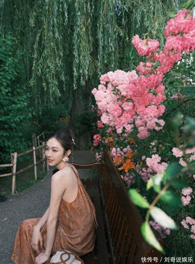 我觉得核心就三点:首先得“去繁从简”。你看姜妍那身,浅棕色纯色基底,就胸口和裙边绣了点儿小花纹,没满屏的亮片、蕾丝叠着来——仙女风最怕“用力过猛”,越简单的颜色越有高级感,比如米白、淡粉、浅棕这种低饱和度的,像给衣服裹了层柔光滤镜;材质也得选垂坠感强的,雪纺、真丝或者醋酸面料,走路时布料顺着身体晃,不是硬邦邦贴在身上,那股子“飘”劲儿才是仙女的灵魂啊!你想想,穿件硬挺的棉T配牛仔裤,再怎么搭也没那股仙味儿吧?